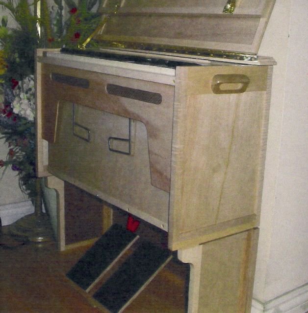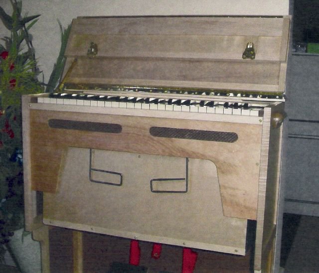 ORGAN WORKINGS HAVE BEEN COMPLETELY RESTORED, PITCH RAISED TO A440 AND A NEW FURNITURE GRADE CASE CONSTRUCTED. NEW CASE FOLDS AS PER THE ORIGINAL BUT HAS NUMEROUS COSMETIC AND STRUCTURAL IMPROVEMENTS.