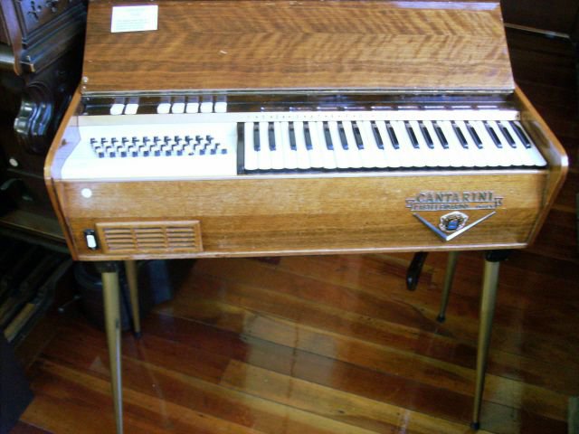Much newer electric organ, Has accordian-type buttons for bass. Catterini was a maker of the Glicibarifon in 1837, a four octave physharmonica. Located at the Woodville Organ Museum, New Zealand #74
