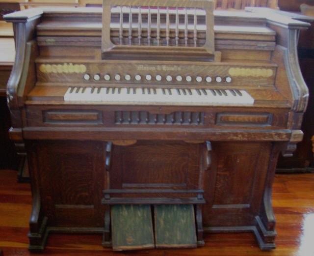 On loan to the Woodville Organ Museum, New Zealand, #87. Bass/treble break at keys 31/32.