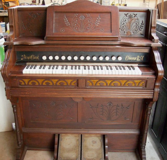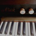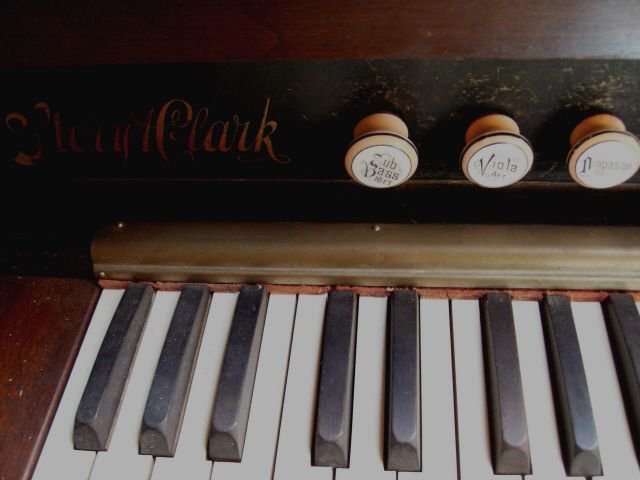 Located at the Woodville Organ Museum, New Zealand, #90. Bass/treble break at keys 24/25. Porcelain knobs
