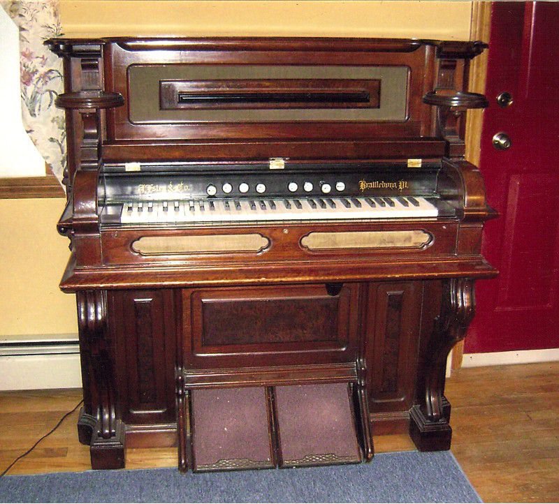 Stencilled J. Estey & Co. Bass/treble break at keys 31/32. Located in Massachusetts.