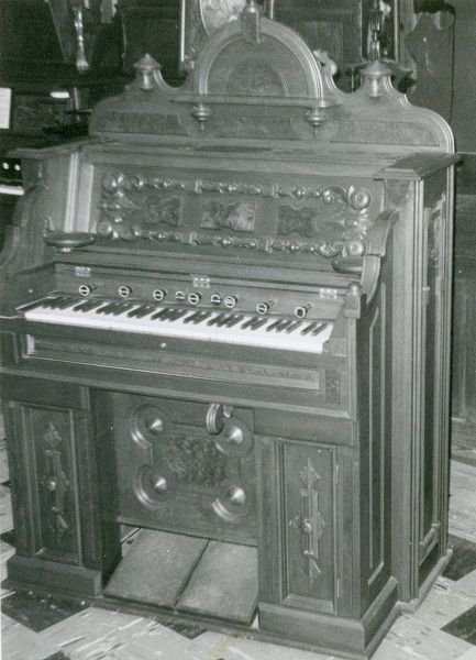 Bass/Treble break at B/C. Dimensions are: 45.5, 23.5, 47+18". 2.5 sets of reeds, 1-8'', 1-4'', 1/2 16''. Music bins located on either side of treadles.