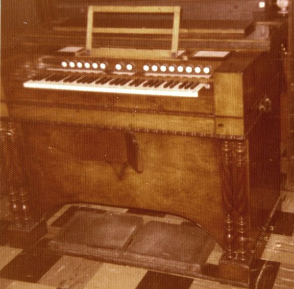 Bass/treble break at E/F. Dimensions are 48, 25.5, 39.5", treadles are 15.25" wide.Ivory keys and ceramic stop faces. Inscription to left jam " John Haywood, 11 Library St. Wigan" Stamped in back "J.Deat.".