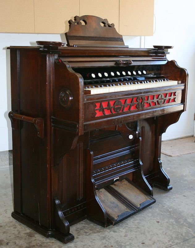 Located at the Woostock Museum, City of Woodstock, Ontario, Canada. Bass/treble break at keys 28/29. Pitch is A454. Missing top, see Gellerman database #5246 for example of top. During this time frame Karn used the term Vox Jubilante to described the more commonly used term of Vox Humana.