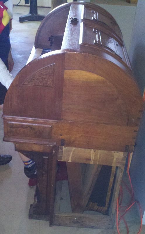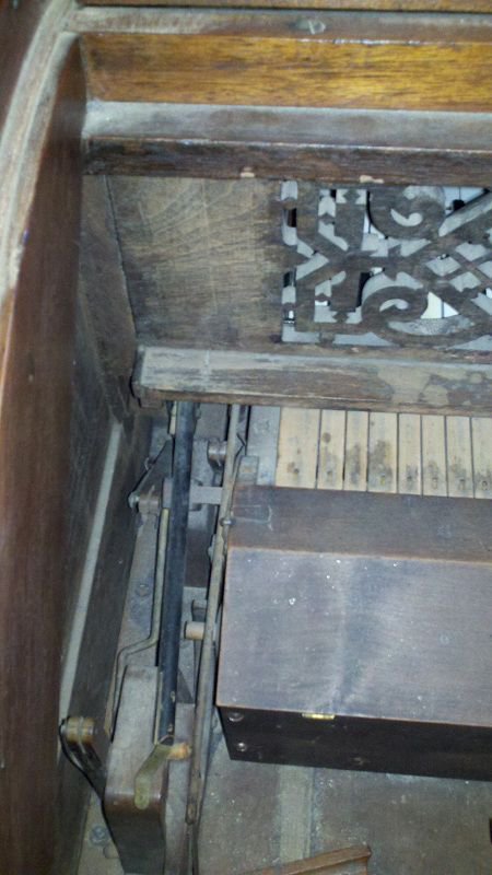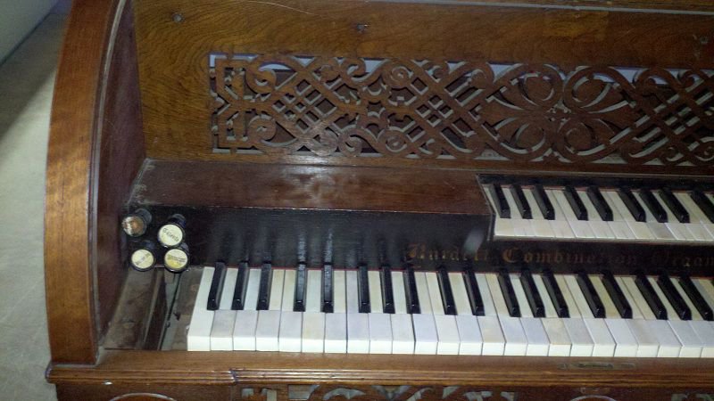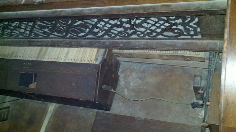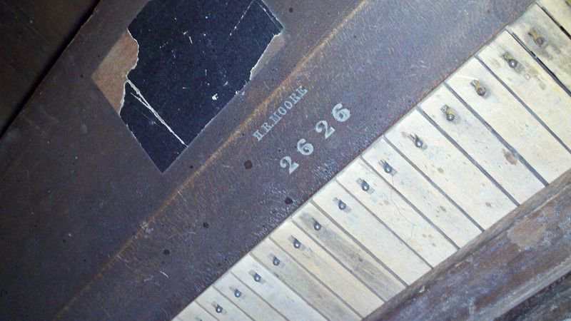 Located 1 mile south, of I-94, exit 127 in New Salem, North Dakota, home of Salem Sue the cow. Organ was found in the back of the museum under a blanket. Date based off serial number. The name "H. R. Moore" is imprinted inside.