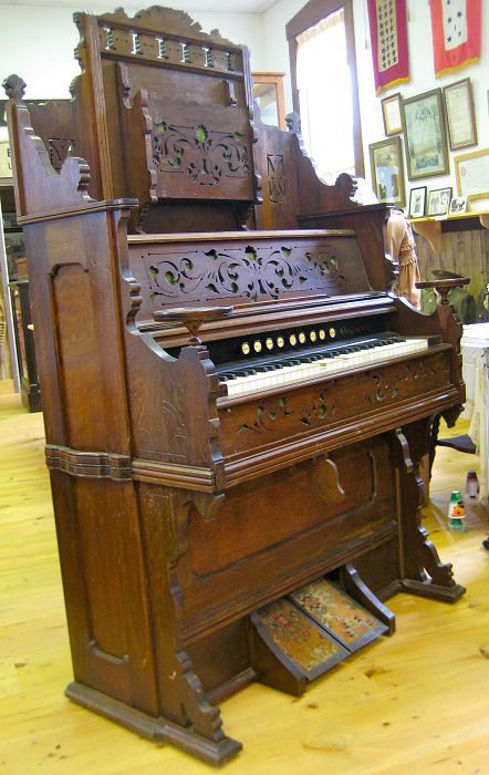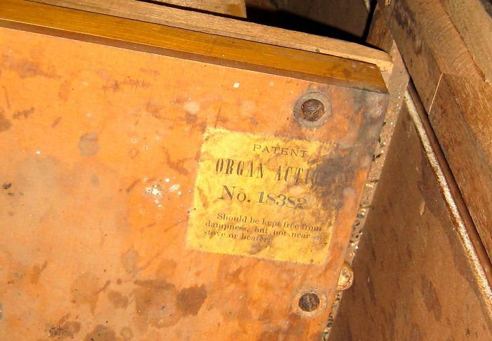 Located at the Orland Historical Society, Orland, Maine. Has orig. reed puller. Pitch is A453, e/f break at keys 24/25.
