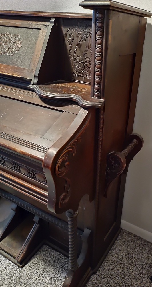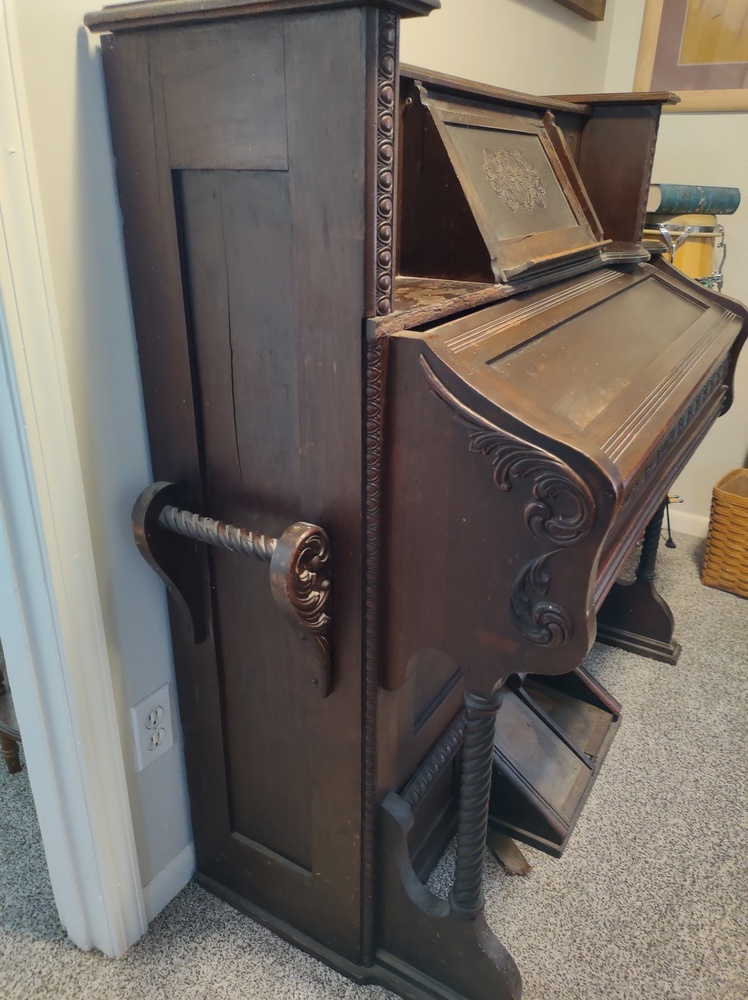 This was my Great Granmother's and I remember playing it with my sister when we were 4/5 years old. One sat on the bench to play the keys while the other sat on the floor and pumped the pedals.
