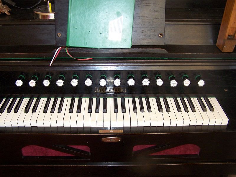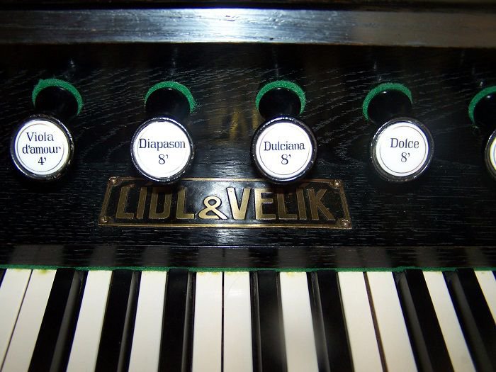 Located in the Czech Republic. Pitch is A440, Has a B/C bass/treble break. Date was found on the swell flap and Key.