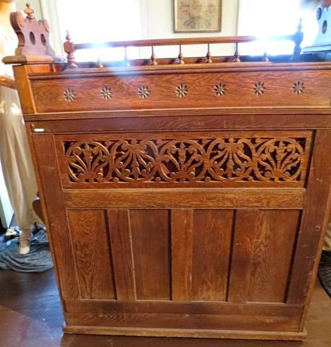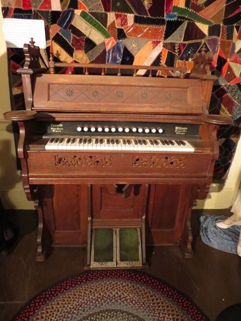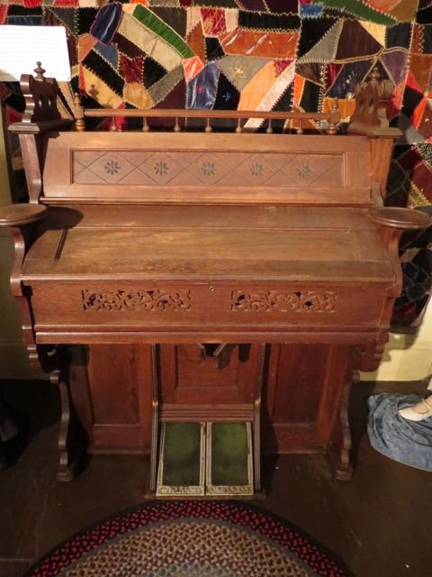 Located at the Woolwich Historical Society, 21 Nequasset Rd, Woolwich, Maine. Pitch is A435, bass/terble break is at keys 24/25 (E/F) Date based off serial number. Coupler are red, stops are black with pitch designations in red (F.t)