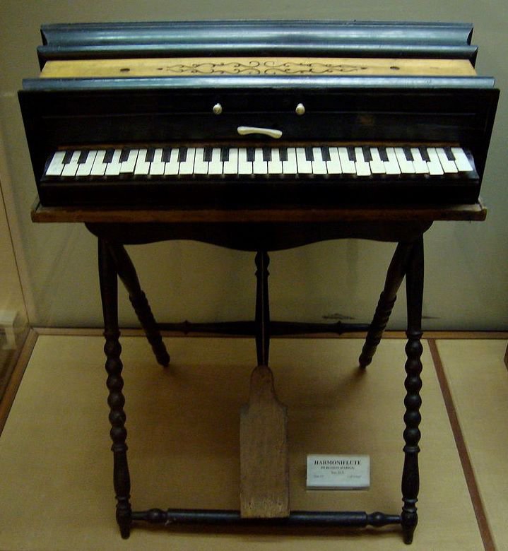 Located in New Zealand. Last picture is of a different Harmoniflute with the folding foot pedal stand. Has 37 double sets of reeds.
