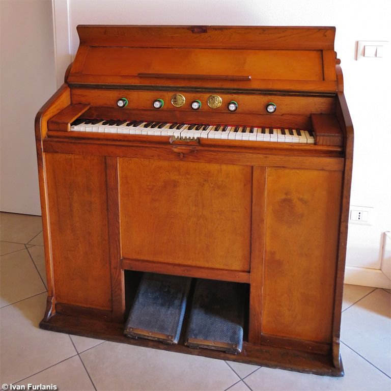 Located at the Parrochia di San Martino, Vigodarzere, Italy. Has 93 reeds and is a transposer. Bass/treble break at keys 29/30. Has a fixed 8'' bass.