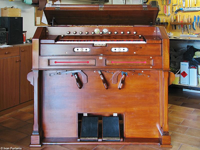 Located at the Chiesa dell''Ospedale psichiatrico, Montecchio, Precalcino, Italy. Has 220 reeds. 5 kneeswells, Forte (inner bass shade), Forte Cancel, Gran Gioco, Forte Cancel, Forte (inner treble shade) and is a transposer. Bass/treble break at keys 24/25