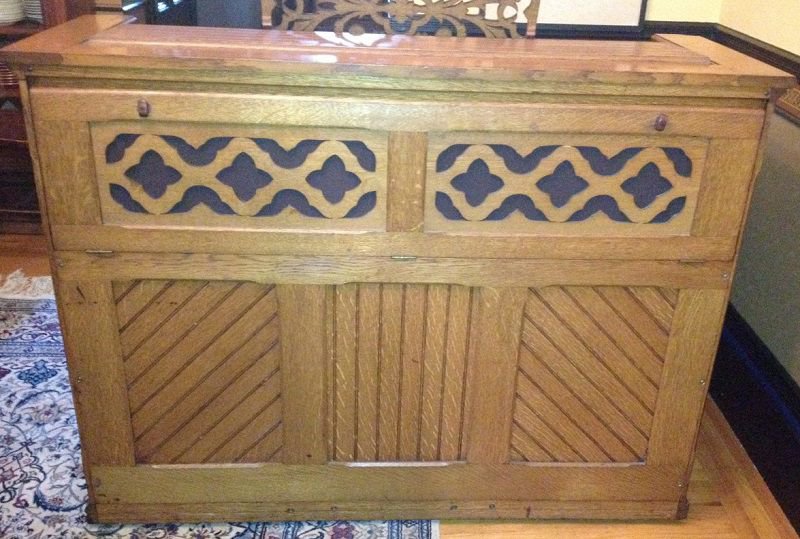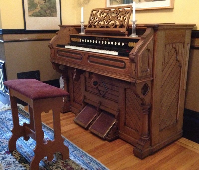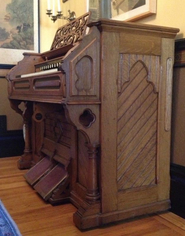 Located in California. Pitch is A437, Bass/treble break is at keys 24/25. Has 3 knee levers, Full Organ, Pedal Point, Knee Swell, Date was written on rear swell.Formerly used in the St. Joseph Chapel of the Star of the Sea (RC) Church in San Francisco, CA.