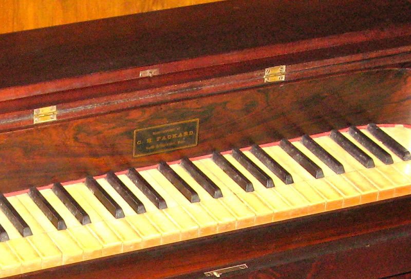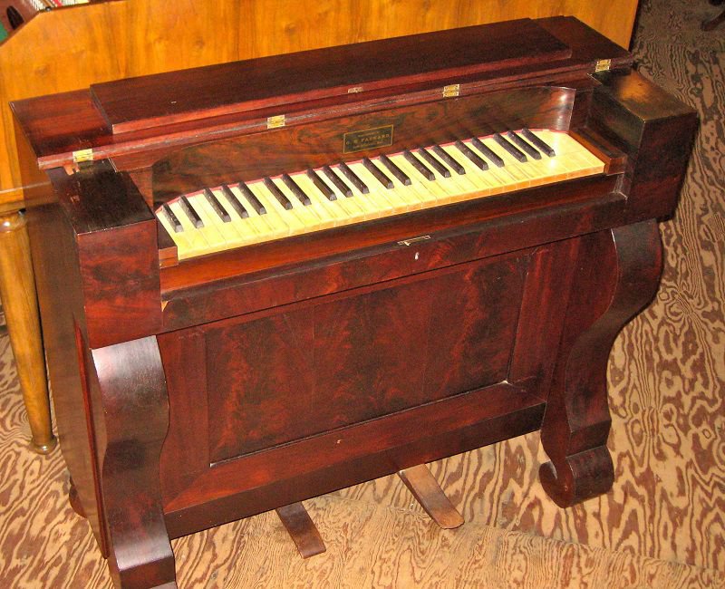 Located at the Pease Collection of Historical Instruments, Palmer, Massachusetts. Only one pedal operates the bellows.