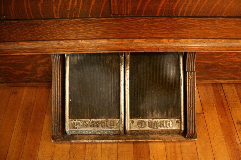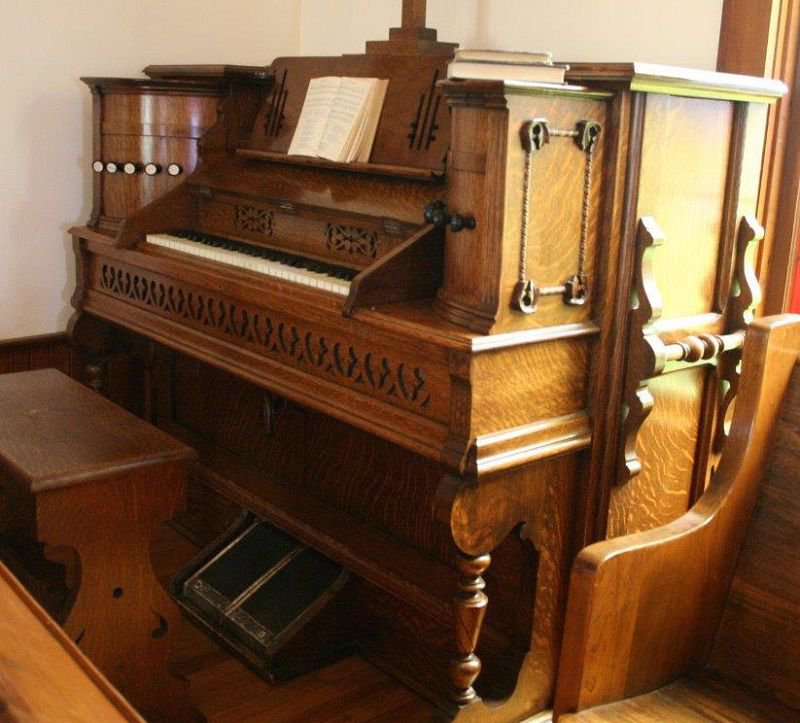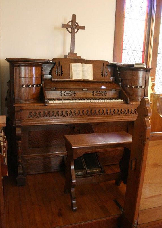 Located at the Mooretown Museum, Mooretown, Ontario, Canada. Original stop names are missing, current ones have been handwritten. Pitch is A452, Bass/treble break is 24/25 (E/F). Date extrapolated from serial number.