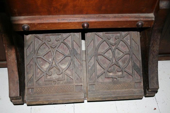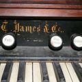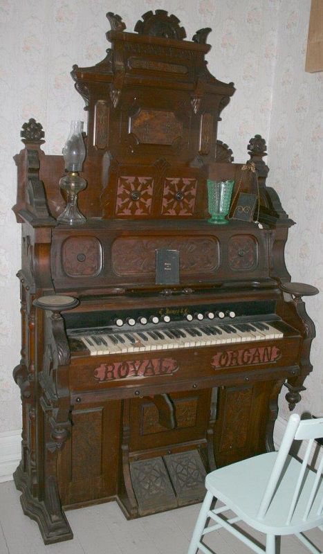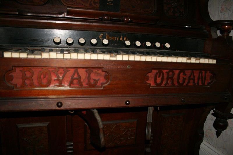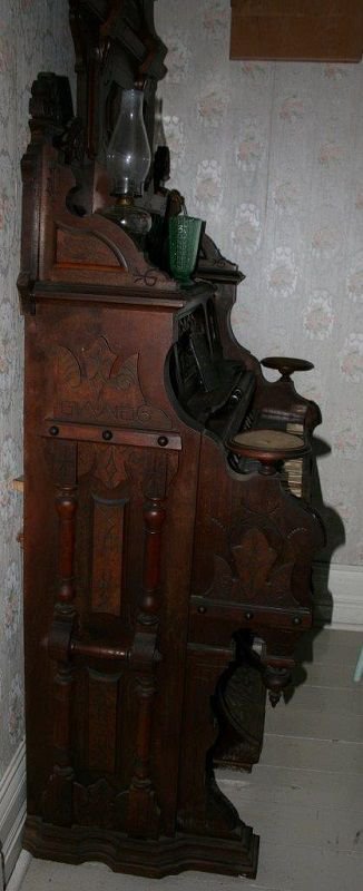 Located at the Mooretown Museum, Mooretown, Ontario, Canada. Date estimated based on when company was extant in 1886 and styling of organ. Bass/treble break at keys 28/29.