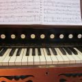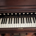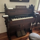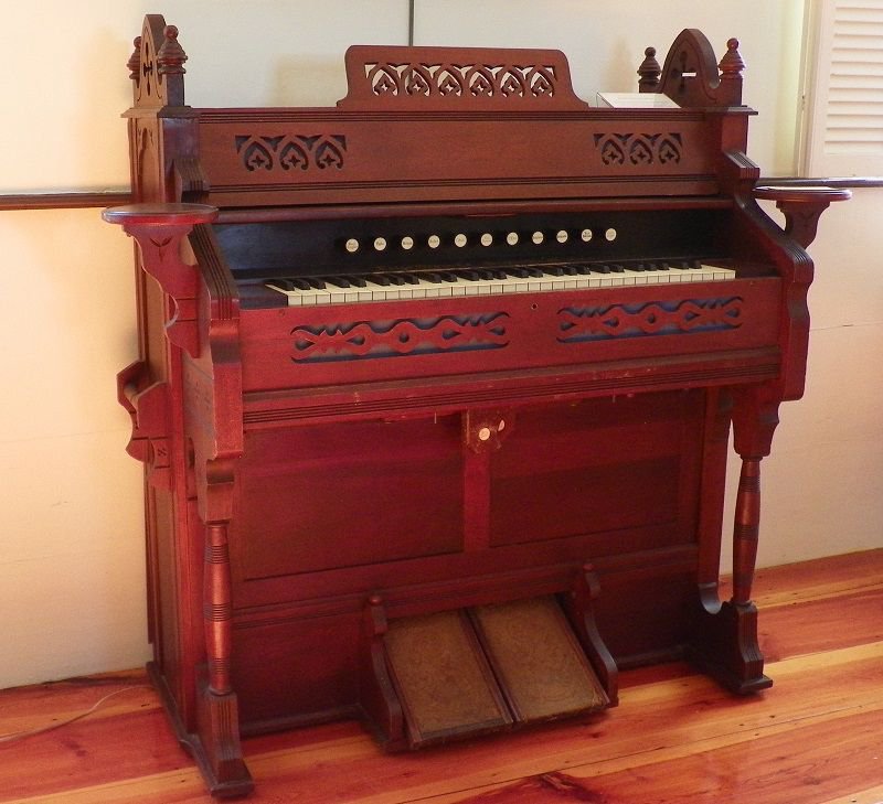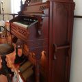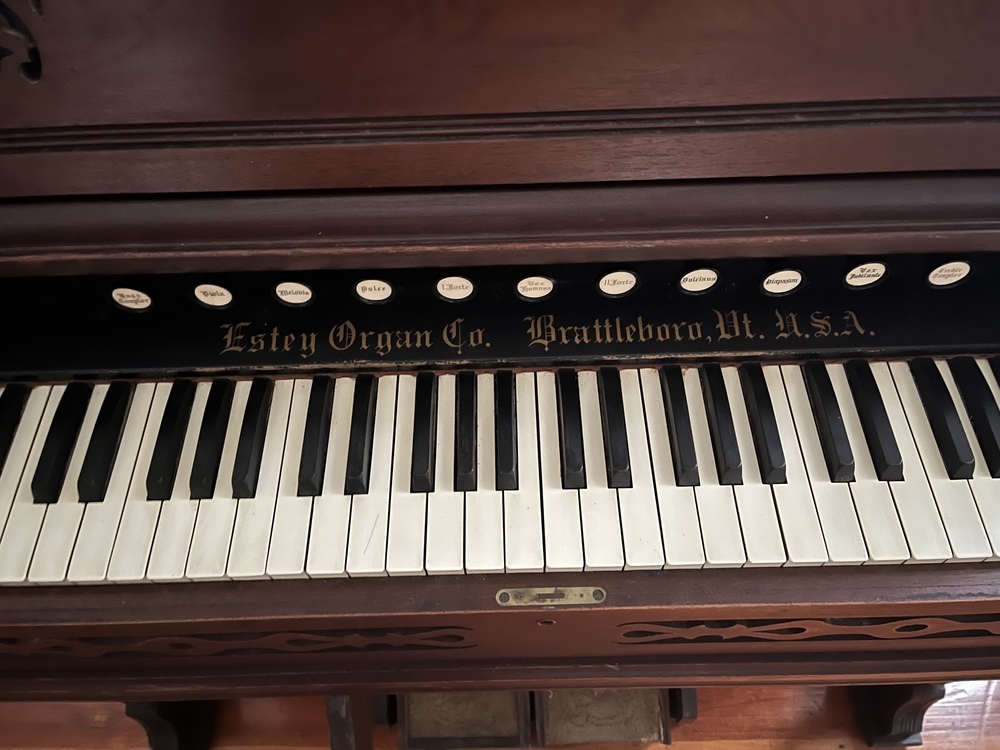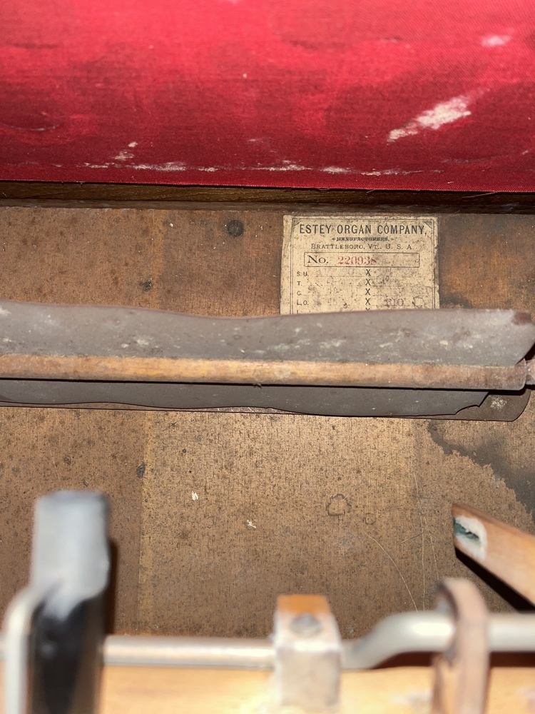 The current Estey was purchased for the Still River Meetinghouse in Still River, Ma (Baptist) sometime in the 1890’s according to records and historical photos from the time period. When the Baptist’s decided to sell the building in the 1960’s, it was purchased by the Harvard Historical who now own and maintain the building, as well as the Geo. Stevens pipe organ, and the Estey which is on exhibit.