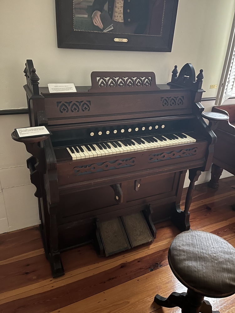 Located at the Harvard Historical Society, 215 Still River Rd, Harvard, Massachusetts. Pitch is A445, Bass/treble break is at keys 31/32 (B/C)