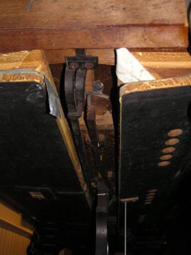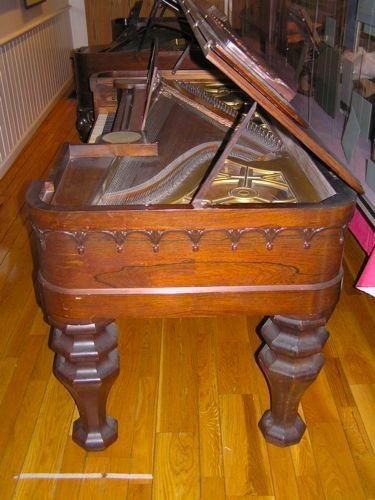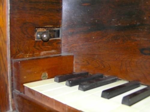 The piano part of this instrument is a fairly typical American square grand of the late 1840''s. Compass is 6 and 1/3 octaves (FF to a4). 73" x 35".