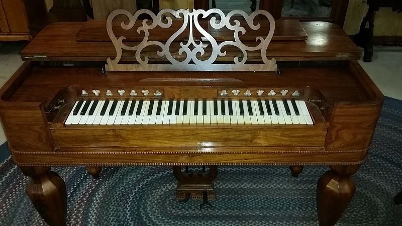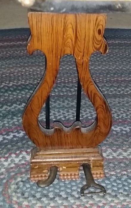 For sale on EBay in Amity, Oregon, asking $650, Jan 2015. Seller unable to locate manufacturing information. Based off music rack, pedal Lyre, bottom bead work on case, it appears to be a R.S. Williams.