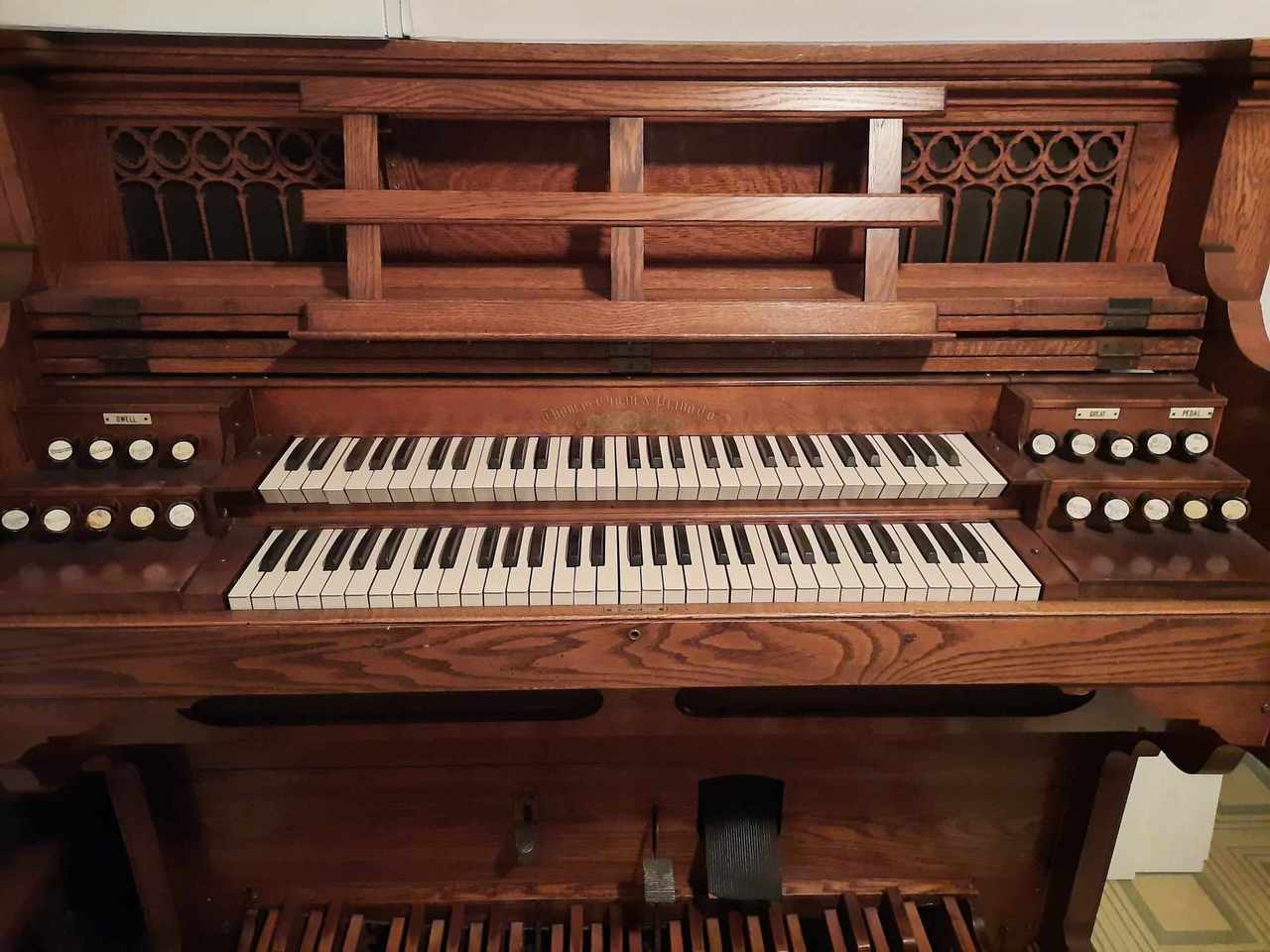 Located in Quebec, Canada. "54" stenciled on organ on back of foundation board (likely the model number).