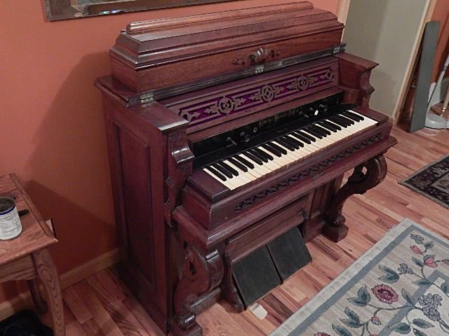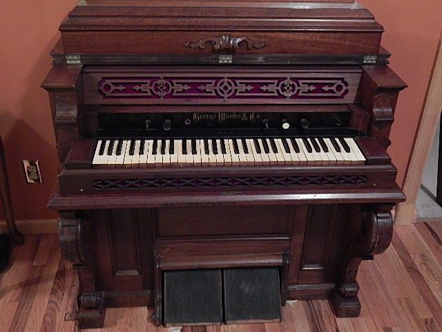 Located in Montana. Pitch is A456, Bass/treble break is at keys 31/32. Date may have been as late as 1883 when there was a company name change to George Woods & Co.