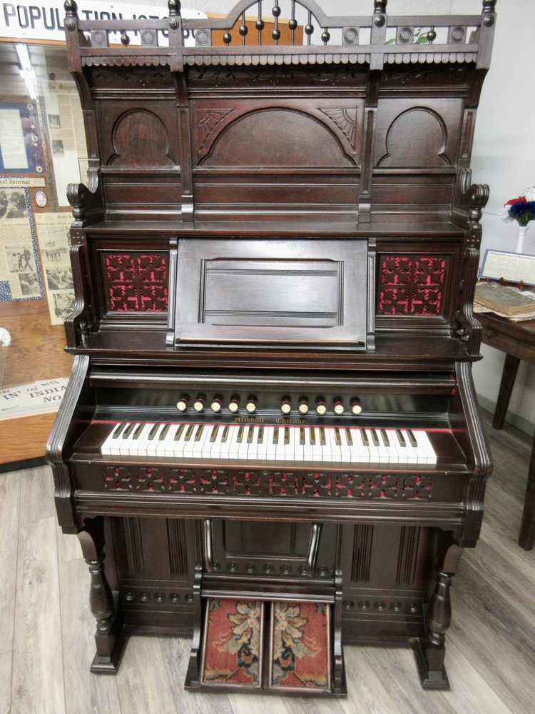 Right Knee Lever = Swell; Left Knee Lever = Full Organ. Celluloid keys.