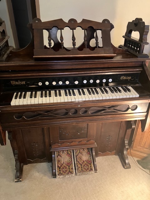 This organ is in the historic Hayden Inn in Hayden, Colorado. The inn, built in 1910, has been a private home since the 1960s. The organ plays but has problems; leaks, missing stop labels, and right knee lever (Full Organ) not working. Located in Colorado