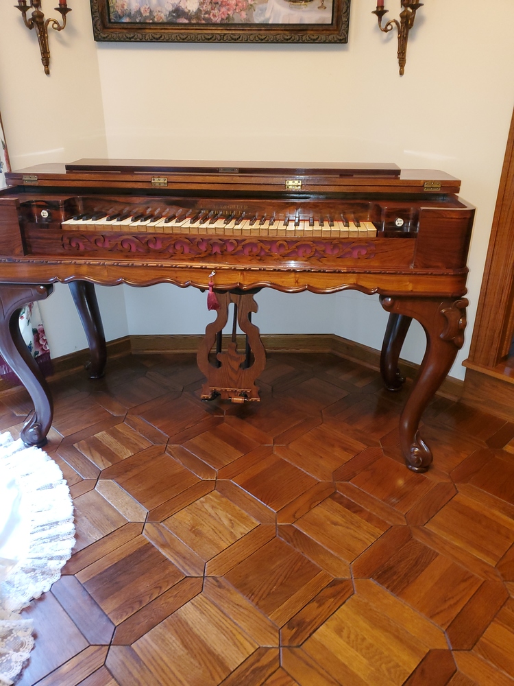 I received this instrument approximately 50 years ago as payment for some remodeling work I did for a neighbor. It had been stored in the dry attic and was missing the music rack, pedals, actuating rods, pedal support, and various trim pieces. I restored the bellows and refinished the case approximately 1985. I did not notice a serial number at that time. It was in surprisingly good condition--All reeds function, all ivory is good condition. It is the centerpiece in a small sun room in our house. I recently decided to make a new music rack. I have the design from a melodian by the same maker. I also copied the pedals and hanger from that melodian at the time I restored the instrument.