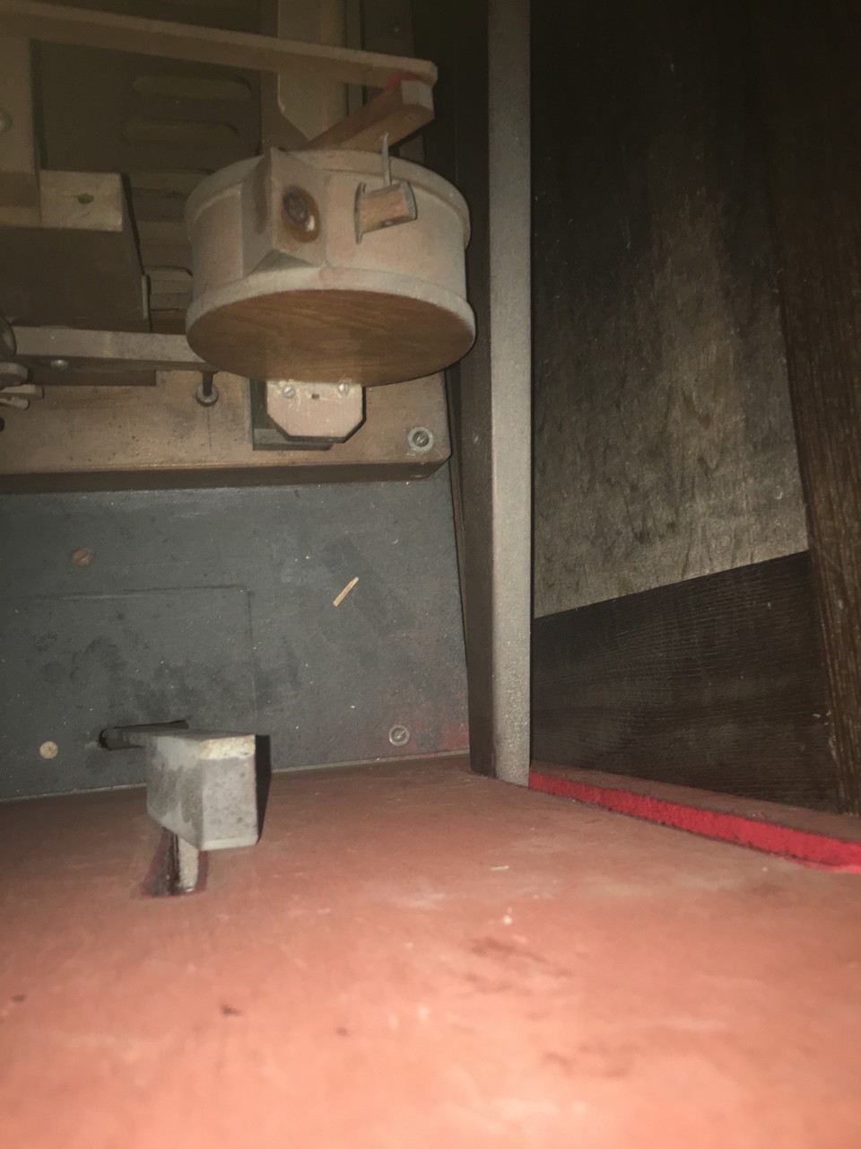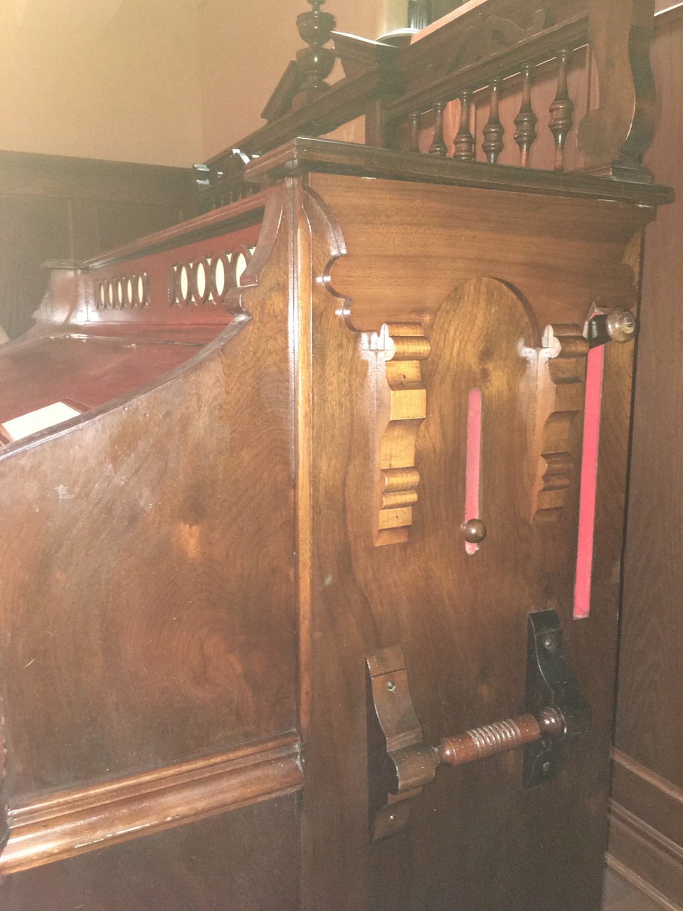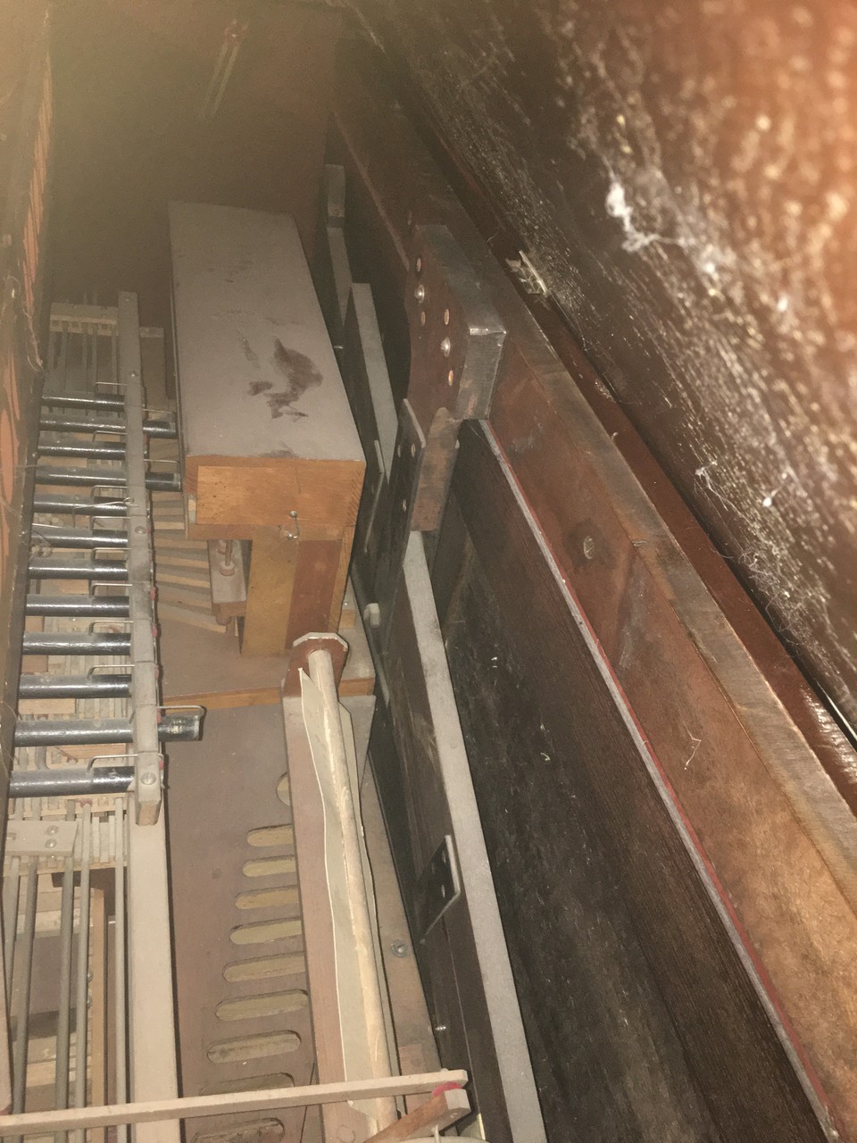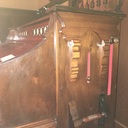Good working order, was in a convent since 1986. Key range is moveable with the transposing keyboard. Stop list is suspect, likely named for the Quebec market or were replaced. Stop 12 is indentified as "Knee Swell", but it is a Melodia. Top is not original to this instrument, it belongs to a Doherty style 140 (Wagner) model.