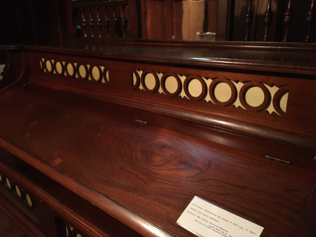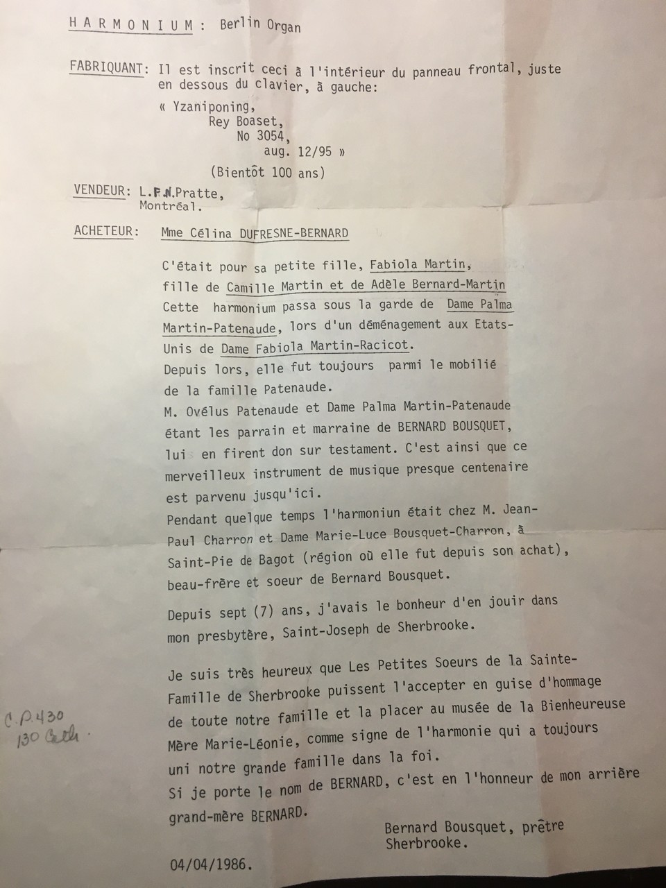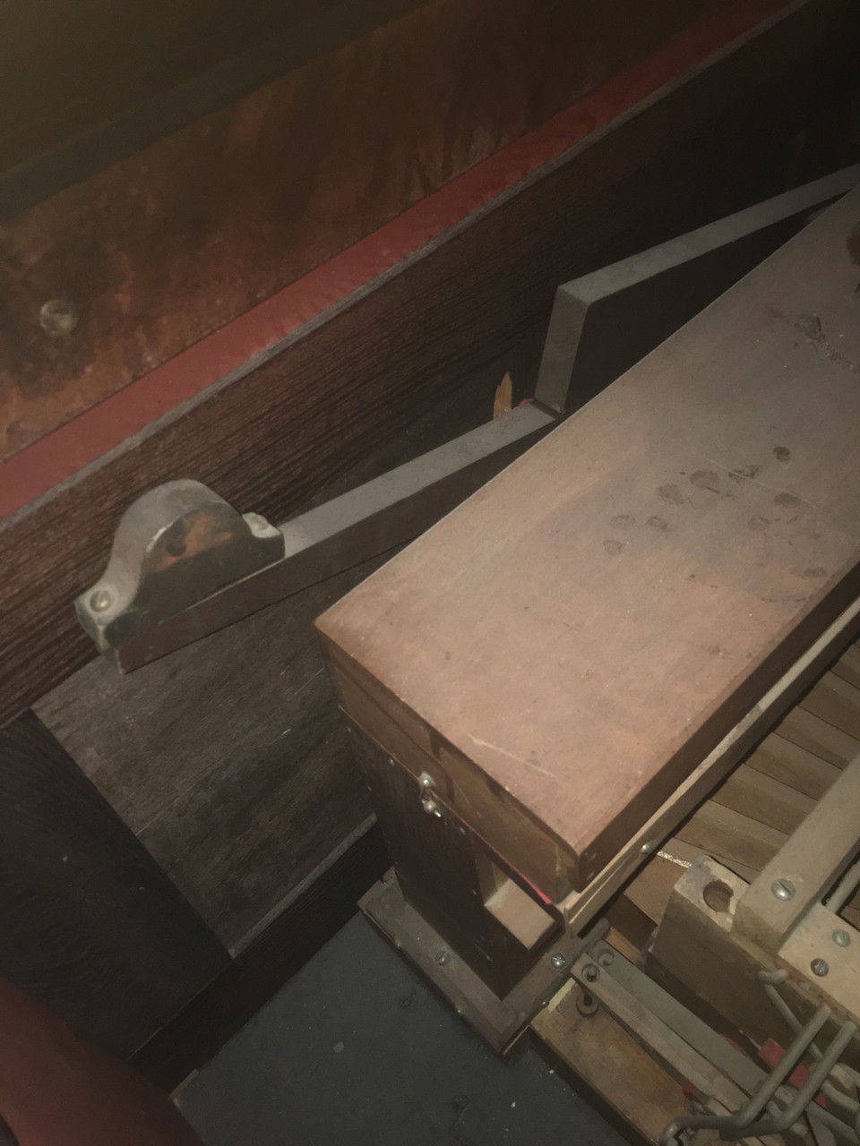 Good working order, was in a convent since 1986. Key range is moveable with the transposing keyboard. Stop list is suspect, likely named for the Quebec market or were replaced. Stop 12 is indentified as "Knee Swell", but it is a Melodia. Top is not original to this instrument, it belongs to a Doherty style 140 (Wagner) model.