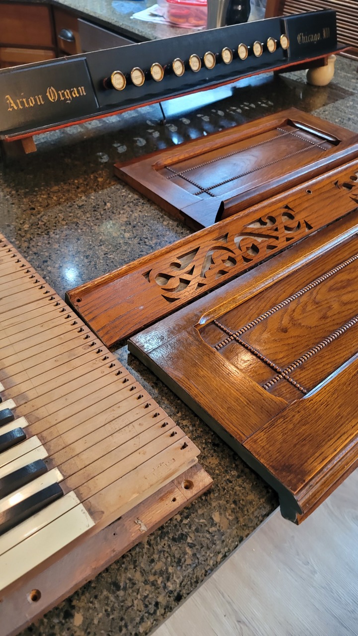 Keyboard stamped 'Made by Augustus Newell & Co, Chicago Ill' and written in pencil what looks to read 'A R Newton, Oct 8 - 94' (or maybe 'Newell' which would make more sense).