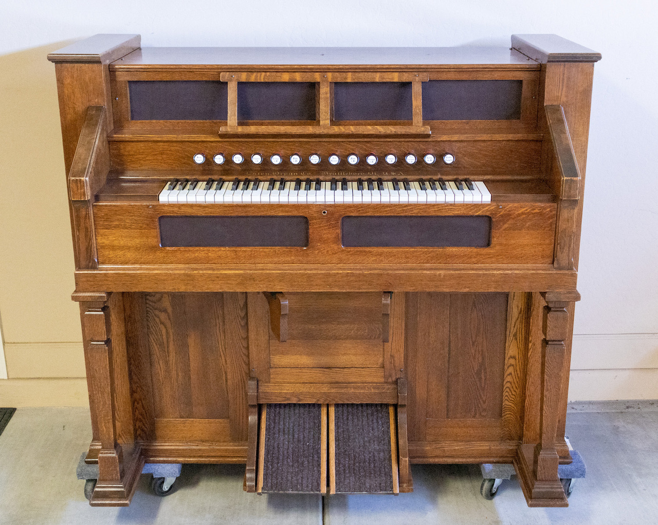This Estey Style "O" 94 was used in a church in Richfield, UT for some period of time. A manager of a storage company in Cedar City, UT bought it from another person who stored it there for some time. It has been in storage for at least 15 years. It was restored in early 2023. Date estimated from other database entries. Pitch is A440. This organ was donated for use in the wedding chapel at the Pioneer Living History Museum north of Phoenix, AZ. It is available for weddings, services, and other special events.
