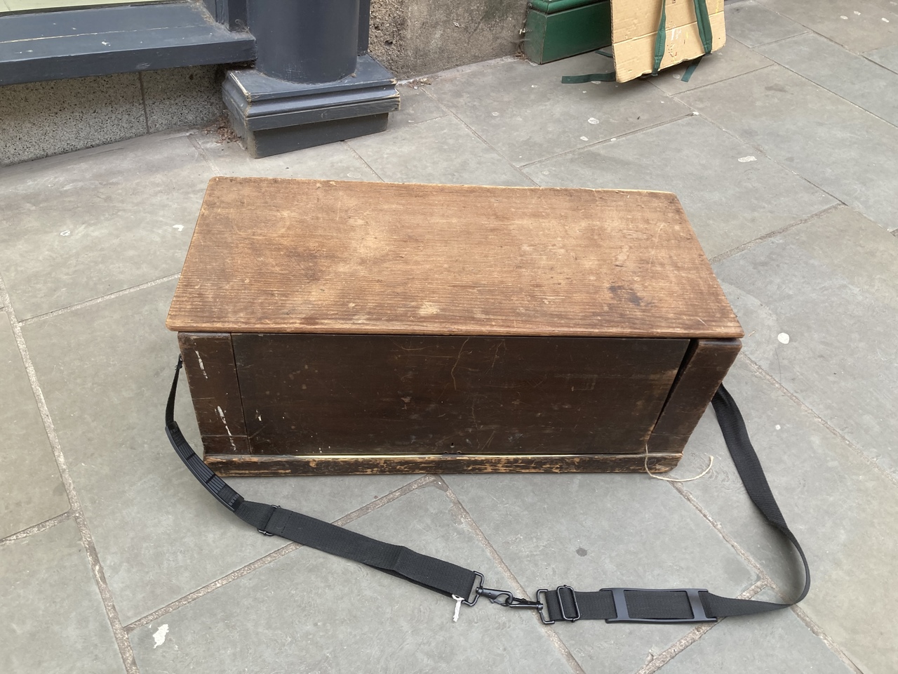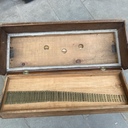 The instrument is a simple folding harmonium with one rank of reeds and no stops. The lid is hinged and was originally operated by a spring ratchet system that allowed it to be raised and lowered by means of a metal knob to the left of the keyboard. However, this system is no longer operational.