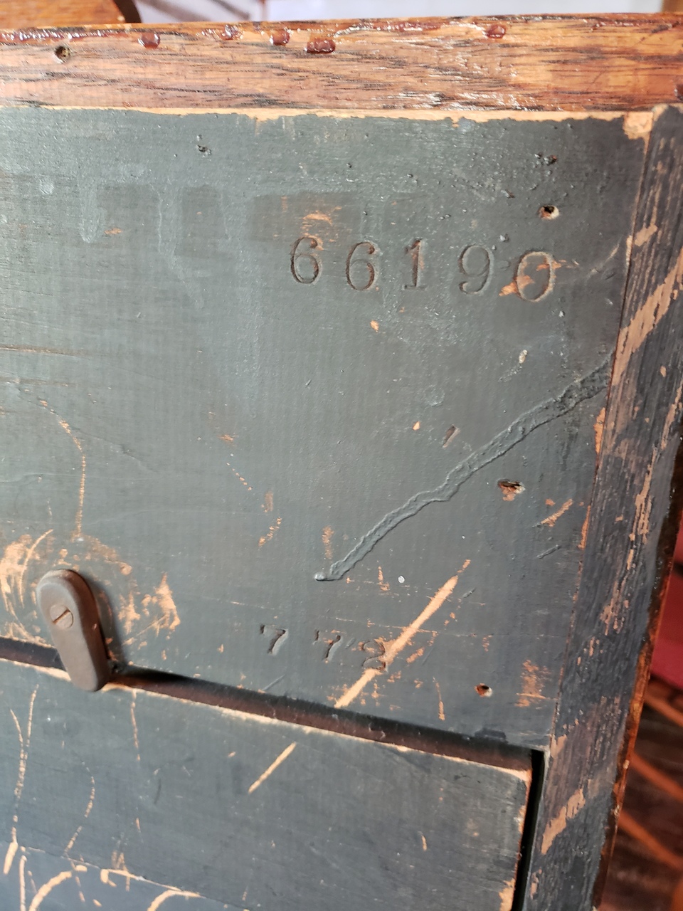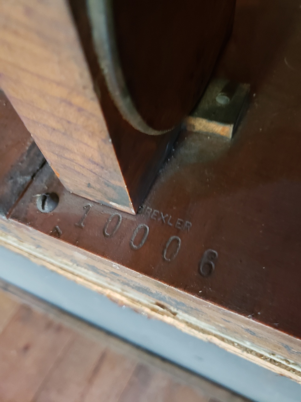 Has knee swells, model number marked as 772 and a patent number inside the back listed as "Drexler"