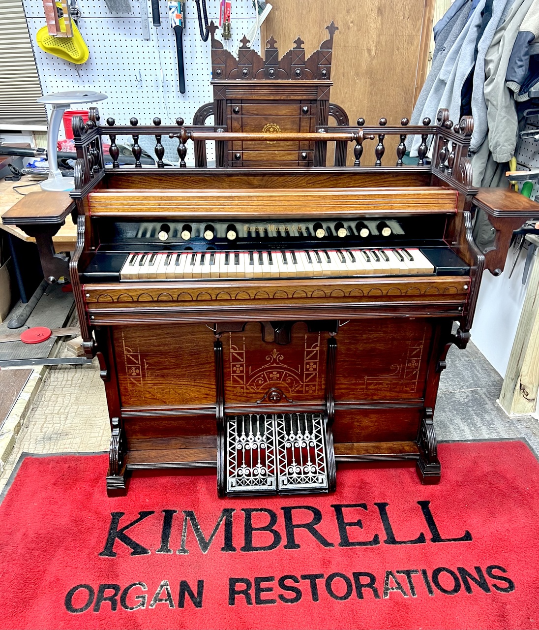 Organ is in the home of the owner in Decatur, Alabama. It was bought new by the owner’s great great grandfather for use by her great grandfather. The organ was subsequently handed down through the family to the present time and has now been professionally restored and the steps photographically documented.