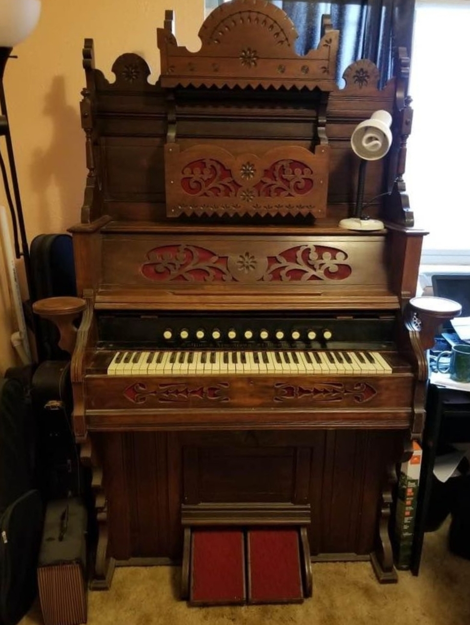 Probably a stencil. Organ found in the Fort Worth area. Restored.