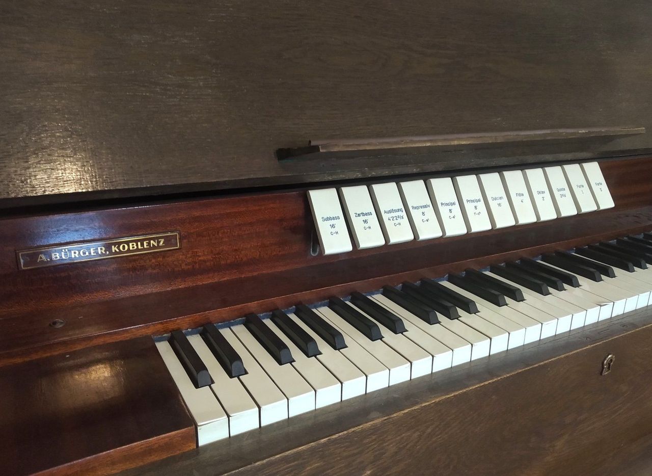 Year estimated to be around 1950s based on the type of stop knobs.