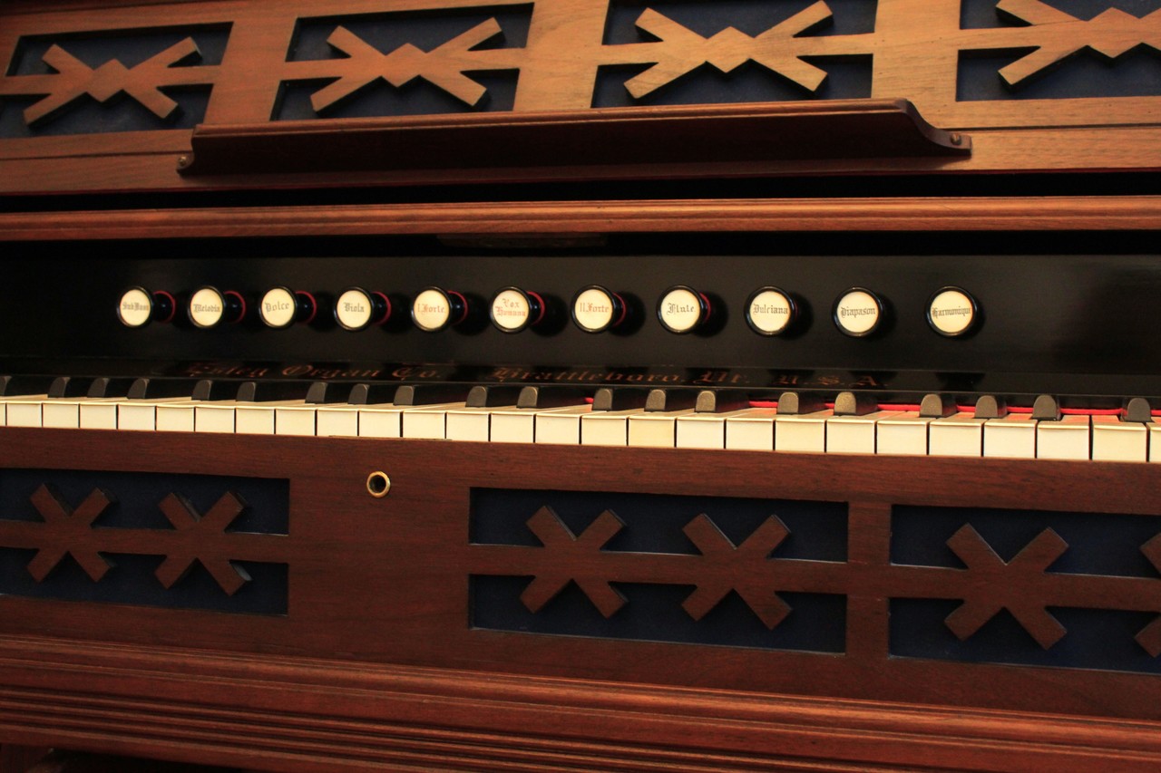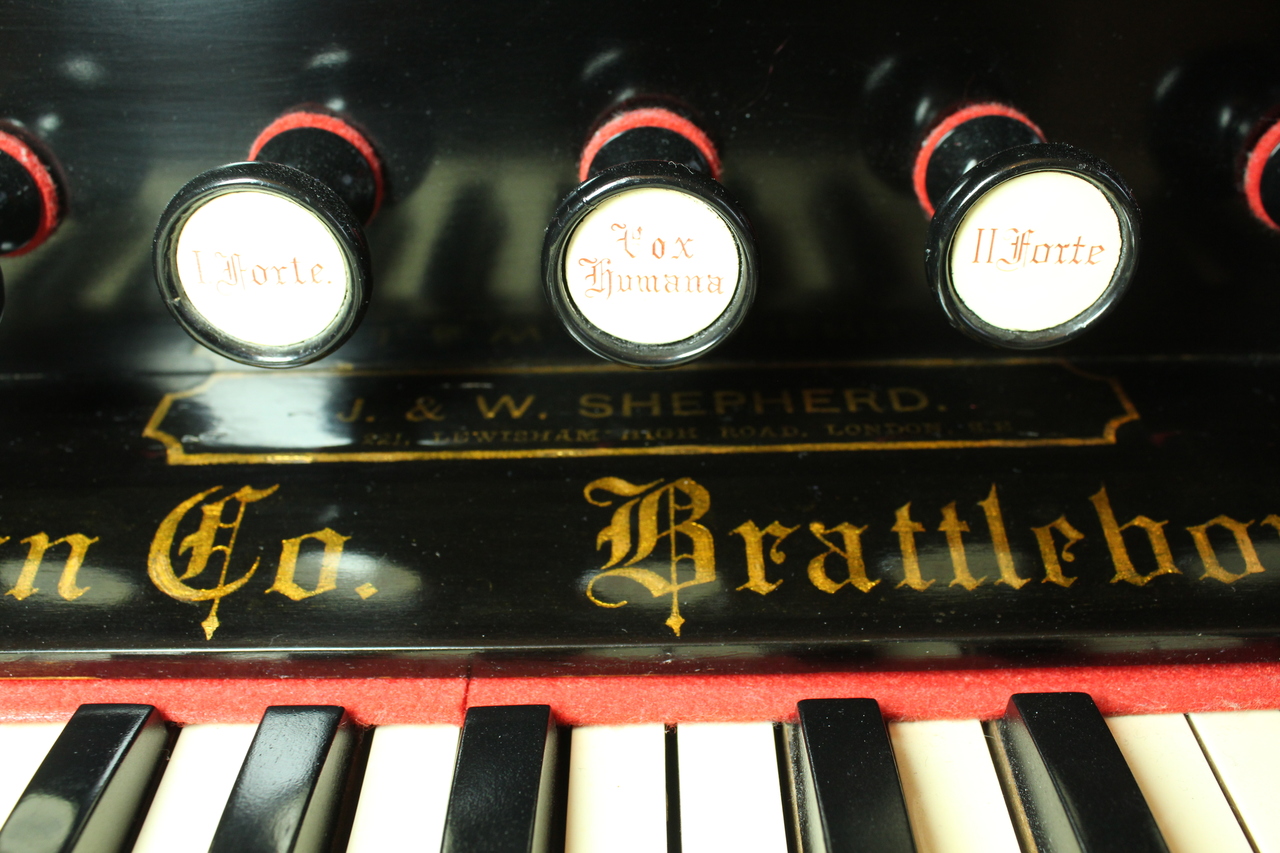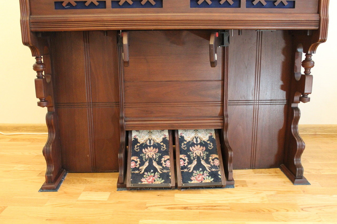 The organ, apparently, was first brought to London, from where it was bought and got to Finland, and then to St. Petersburg during the era of the Russian Empire. It was not used for a long time, and was found in the barn of a country house in Tsarskoye Selo near St. Petersburg. Pitch is A440. The organ was completely restored in 2022. Year estimated based on comparison of serial number with other ROS registrations.