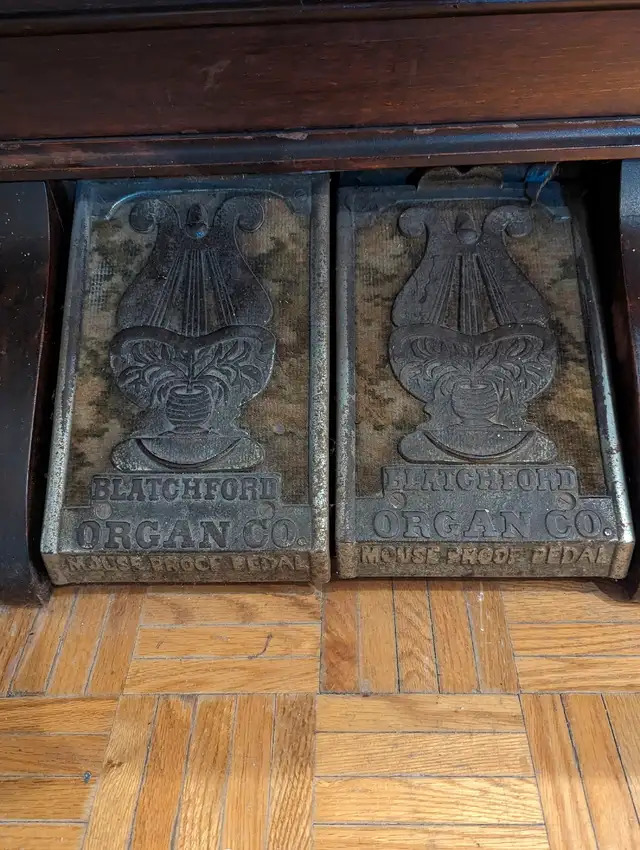 Instrument has pedals each with company name and indication "MOUSE PROOF PEDAL".