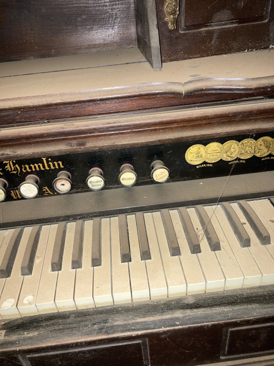 The organ was donated to a chapel which is on my property. The chapel was built in 1910. The organ has been kept dry, but is very dusty. I have only lived here for 3 years.