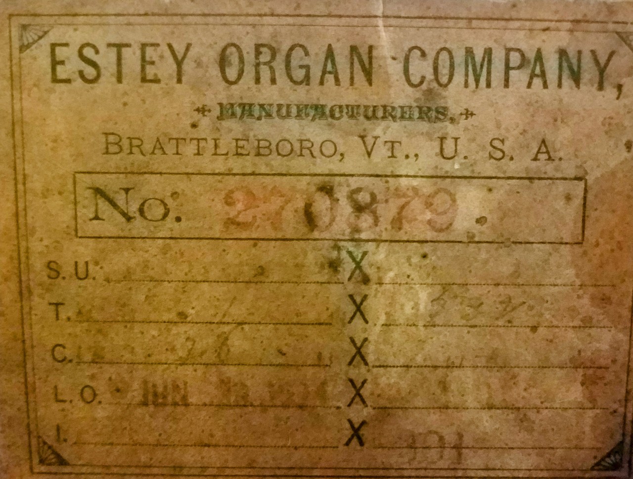 Grand Organ and I Forte Knee Swells. Date found inside organ on manufacturing card.