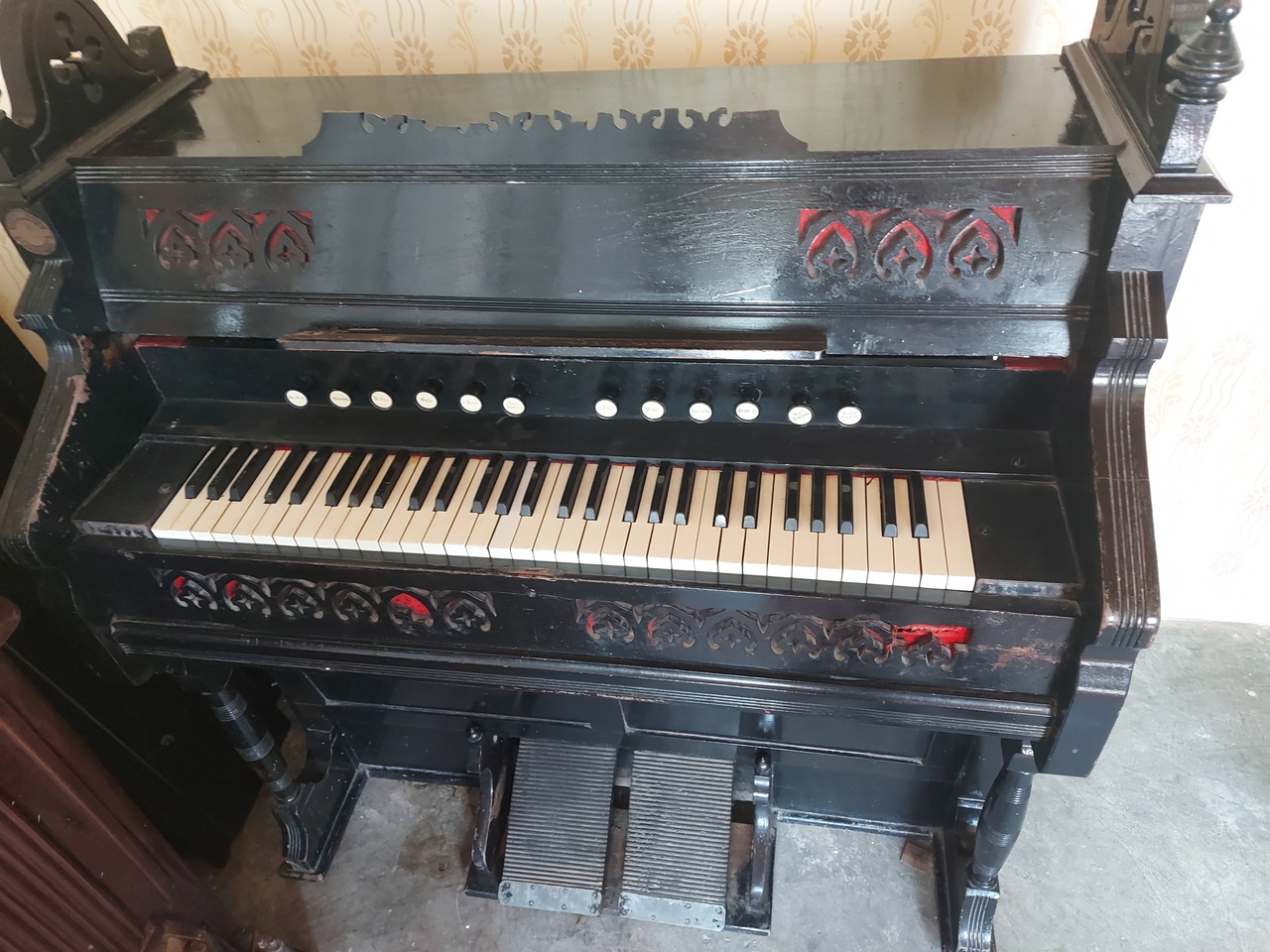 This harmonium was used usually until 2000 in the Catholic Church in Tóalmás.