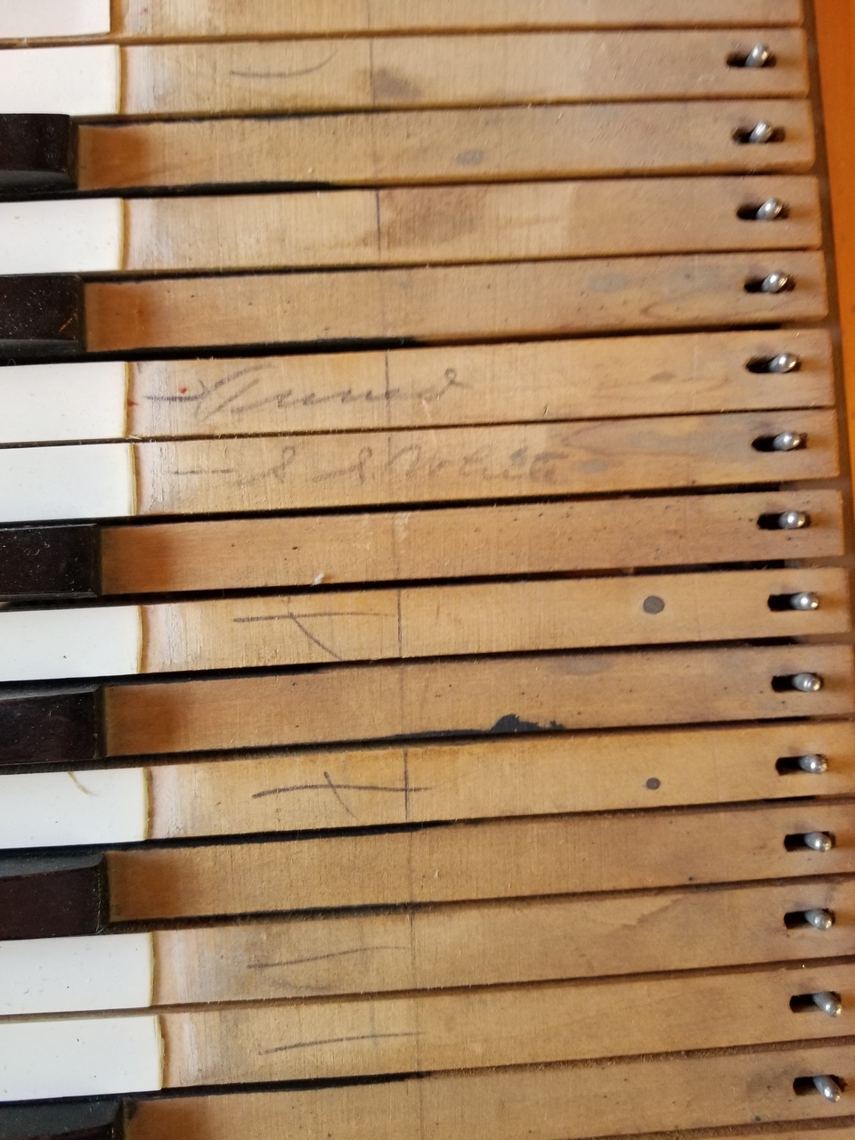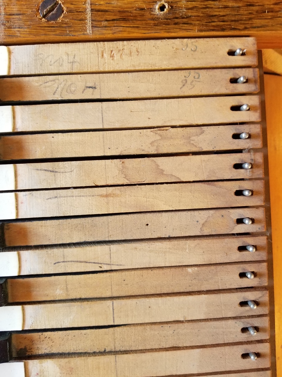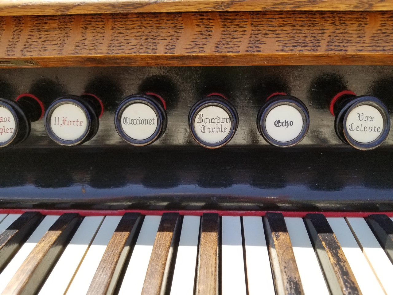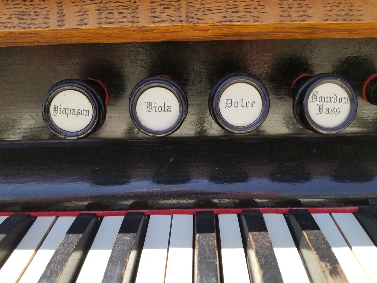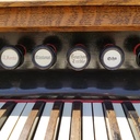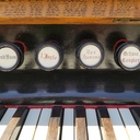 | Echo (8' Replacement stopface for missing "Gamba". Tuned to unison. Soft stop of Vox Celeste.) |