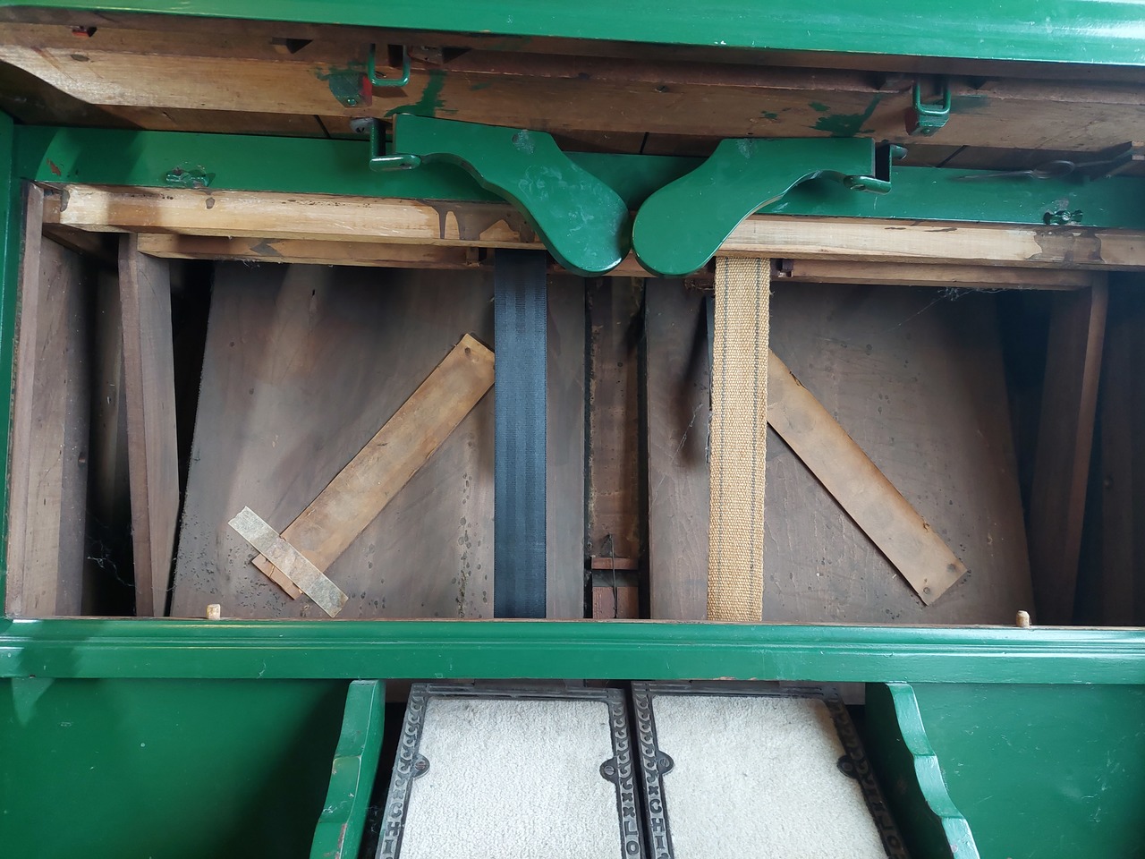 It was missing its parlour-top, and had already been painted green when it was acquired by a family member in the 1970's. I think it may have been used as a stage prop prior to that.