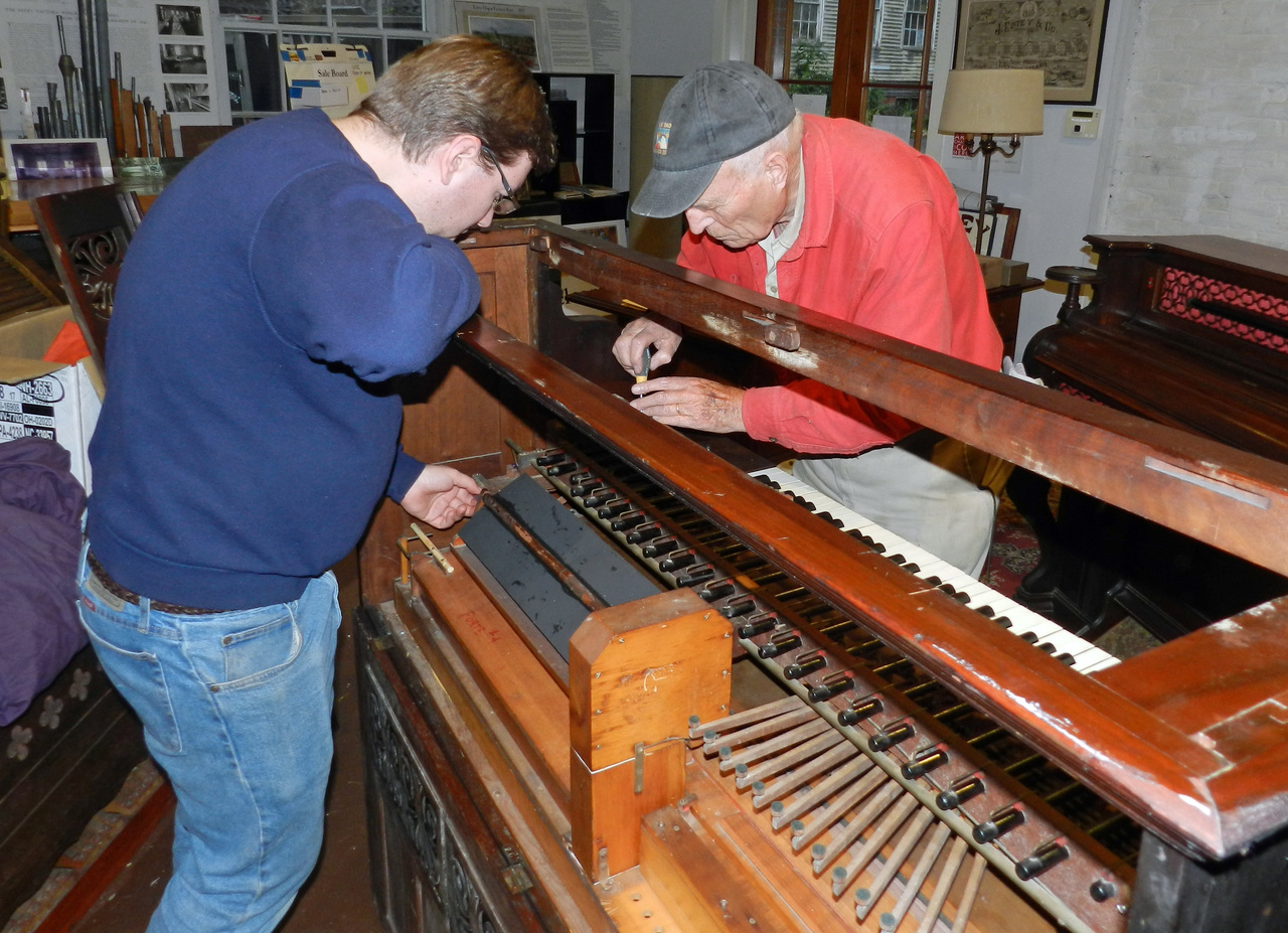 Right Knee Lever = Swell' Left Knee Lever = Full Organ. Celluloid keys. Restored 2023-2024. Obtained from Nelson Pease. Date from Estey label.