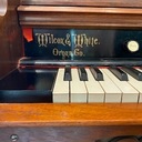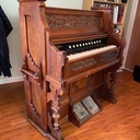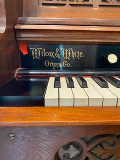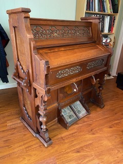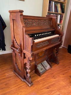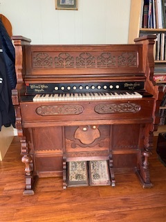 Has workable knee paddles; left - for increased stops and right for 'volume'. Pitch is A440.