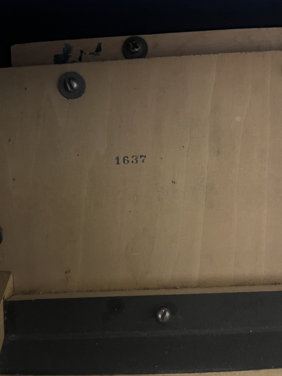 Stamped on sound board: 1637