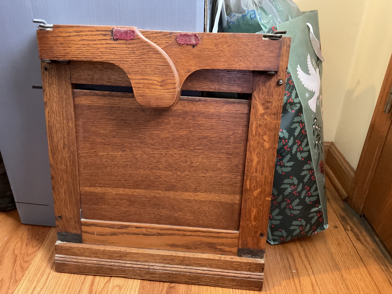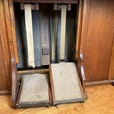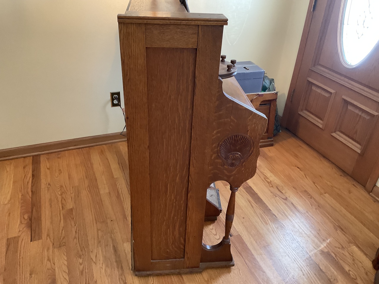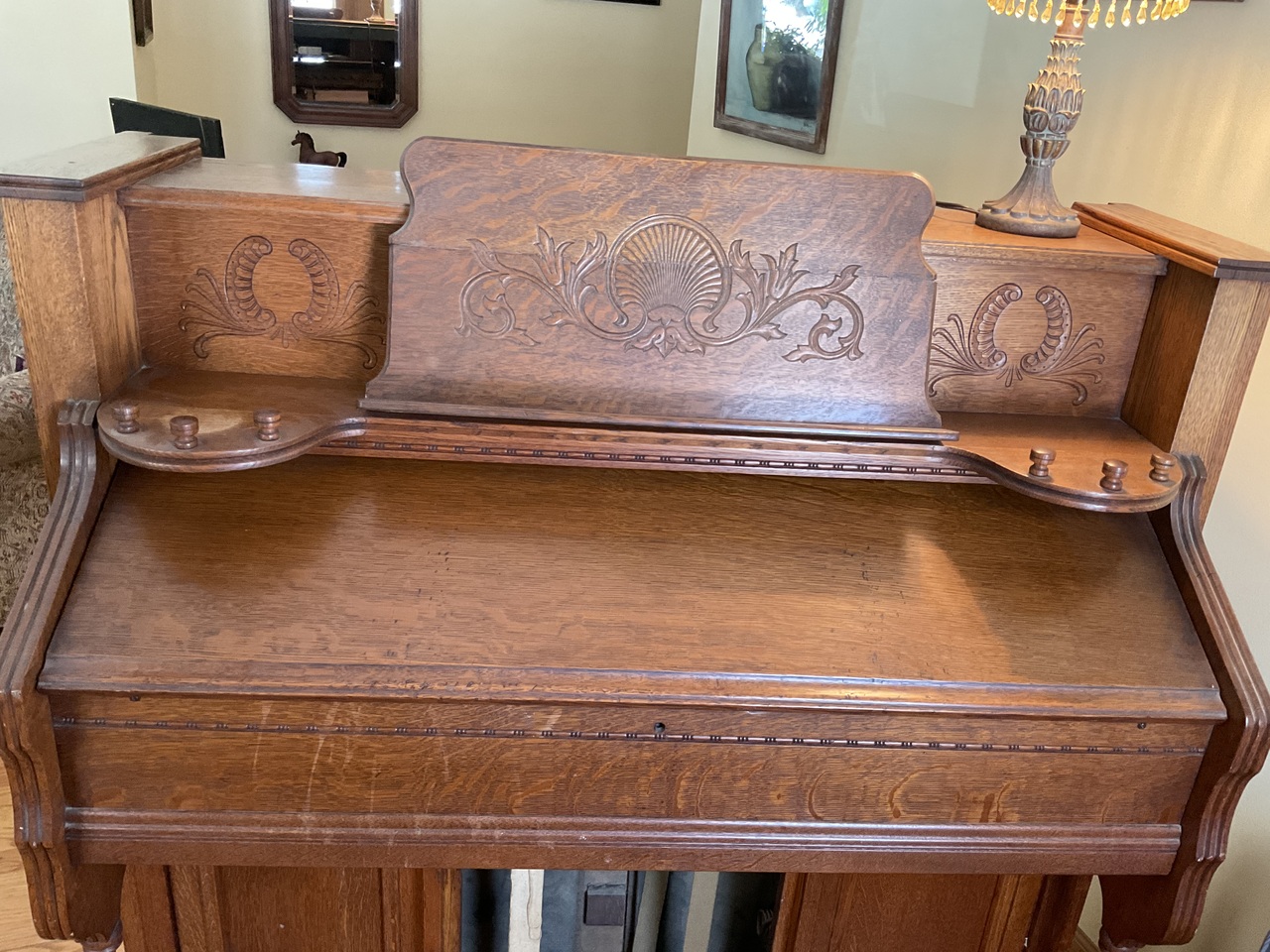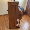 My Dad bought my organ for $25.00 in 1961. He then removed the black paint , stained the wood and did some repairs. The pull knobs did not have labels so he adhered some sticky paper in those spots. He replaced the carpet on the foot pedals. I took piano lessons on the organ for many years and still play it today. It has a beautiful sound.