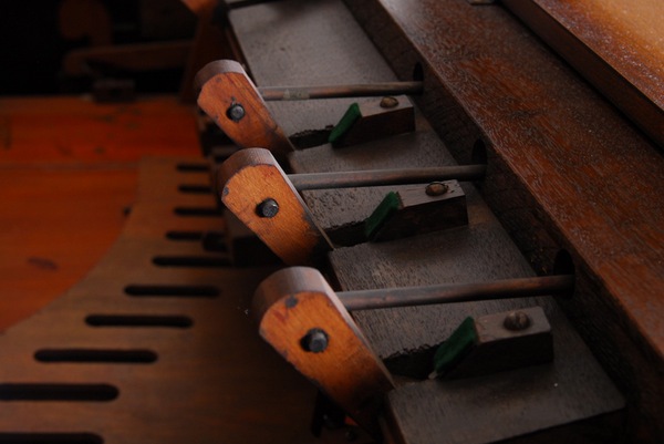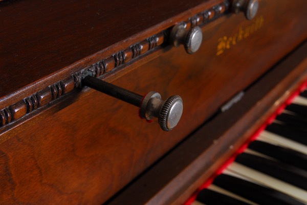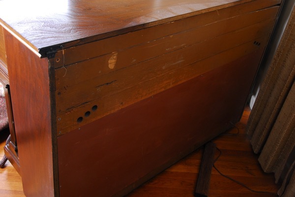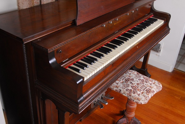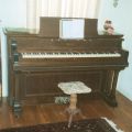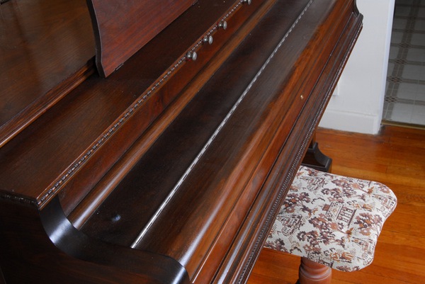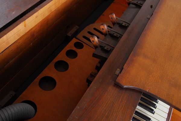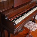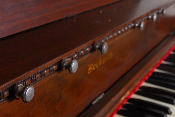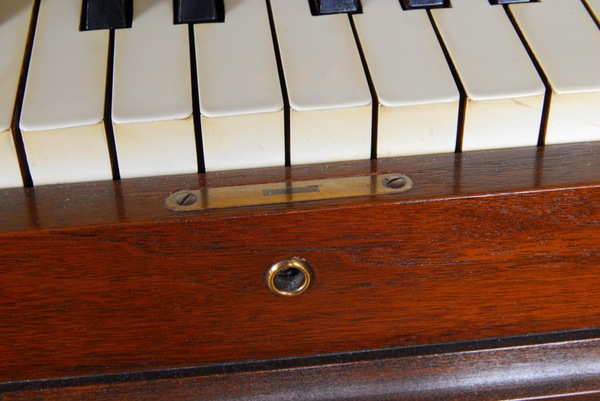 Upright piano case was cut down to spinet height, pitch is A440, Bass Treble break is at G/A